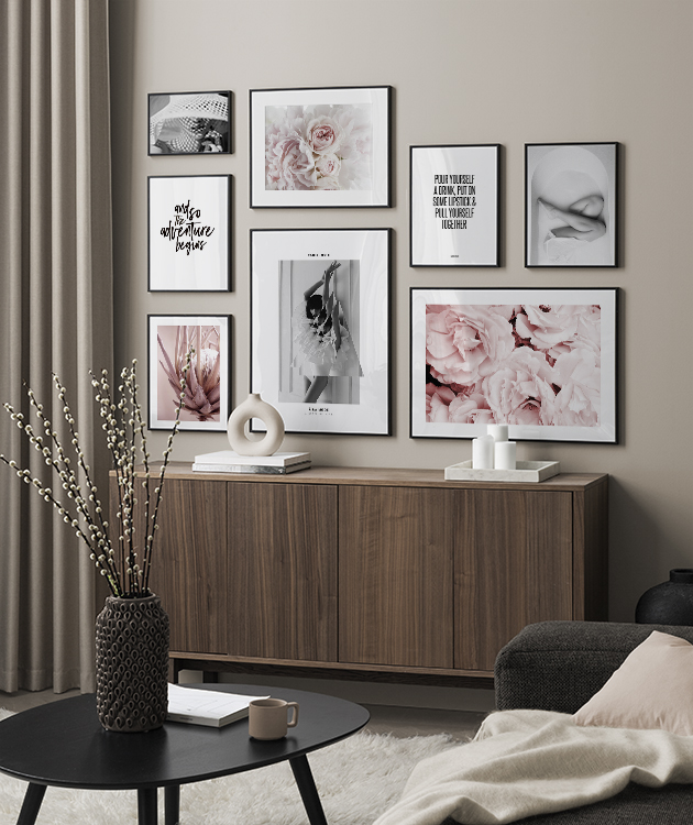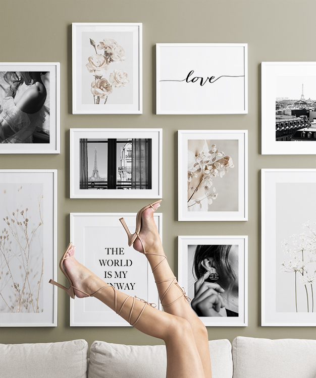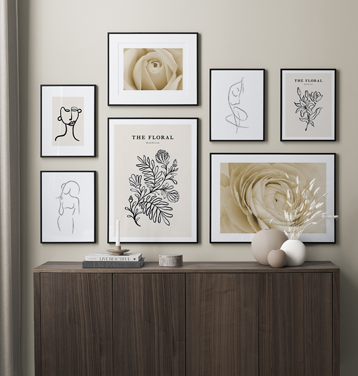 All gallery walls are possible to customise – personalise the designs and choose the sizes, frames, mounts and other poster accessories to put together a unique combination fitting for your home. The possibilities are endless – your imagination is the only thing in your way. Find your new gallery wall here and buy it today!