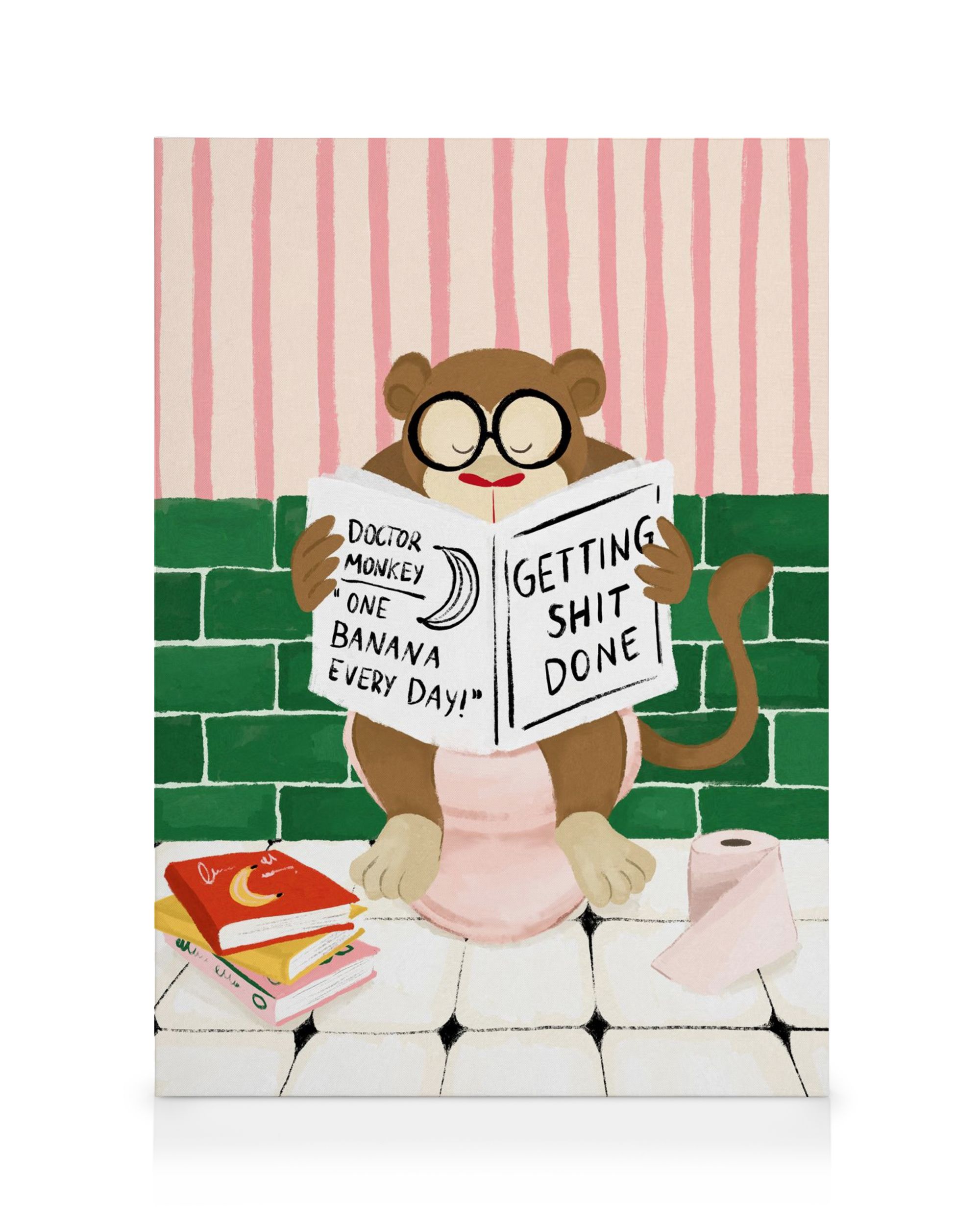 Three canvas prints featuring playful monkeys - one reading, one with headphones and a banana, plus colourful letters spelling "FUNTASTIC".