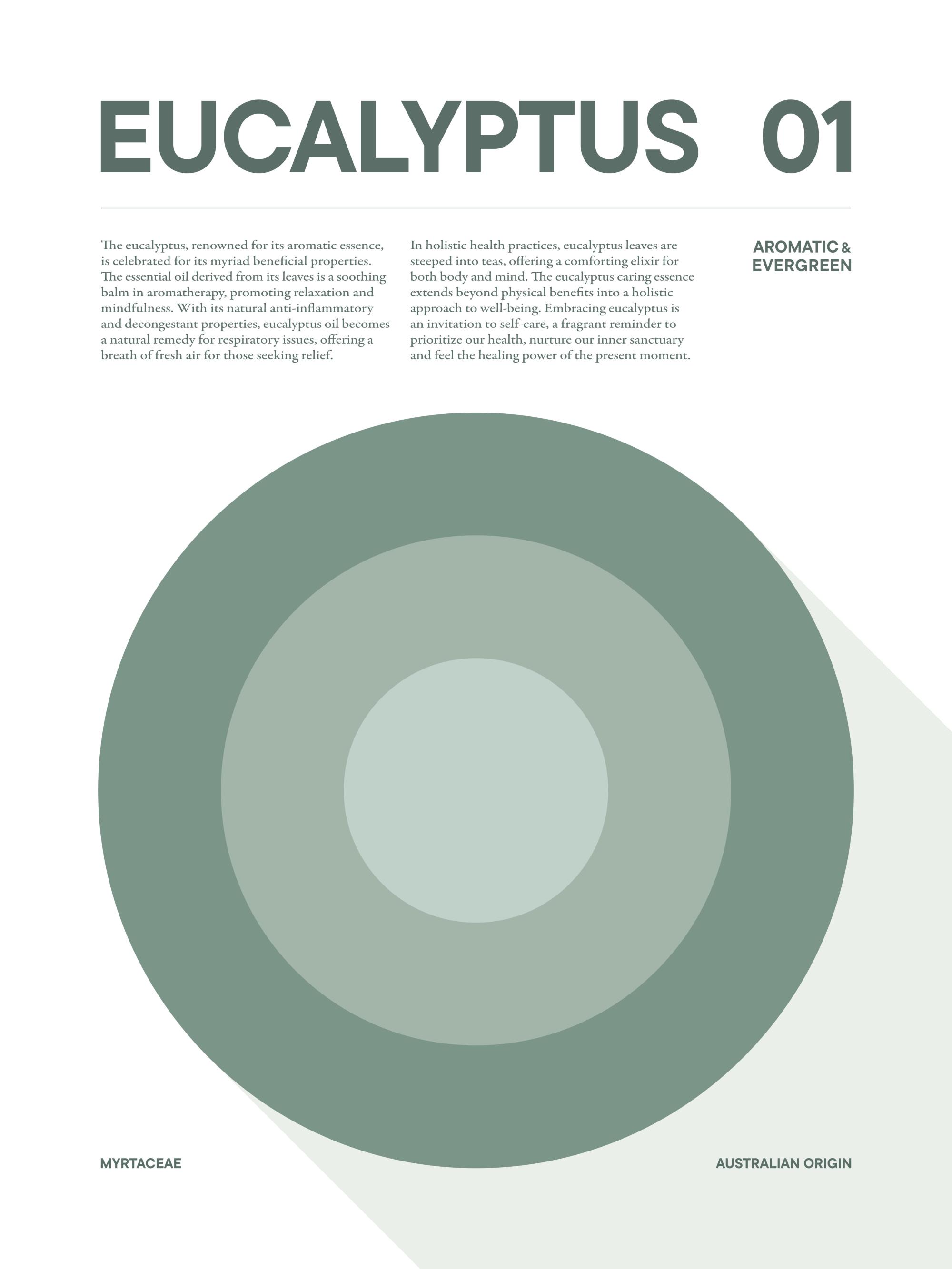 Immerse yourself in the aesthetic of modern design with this minimalist poster. Displaying the text "eucalyptus 01" complemented by concentric circles. The variations of shades in green against a white background provide the perfect contrast. Ideal for those who appreciate clean design in their wall art.