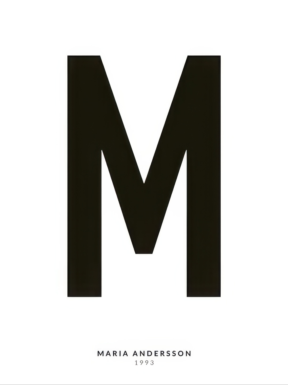 Text poster with the Letter M in black on a white background, with smaller black text to personalise underneath. Personalised prints allow you to customise your very own print, either by adding your own text, names or dates. It's a fun way to personalise your own art or to give as a gift to someone else.